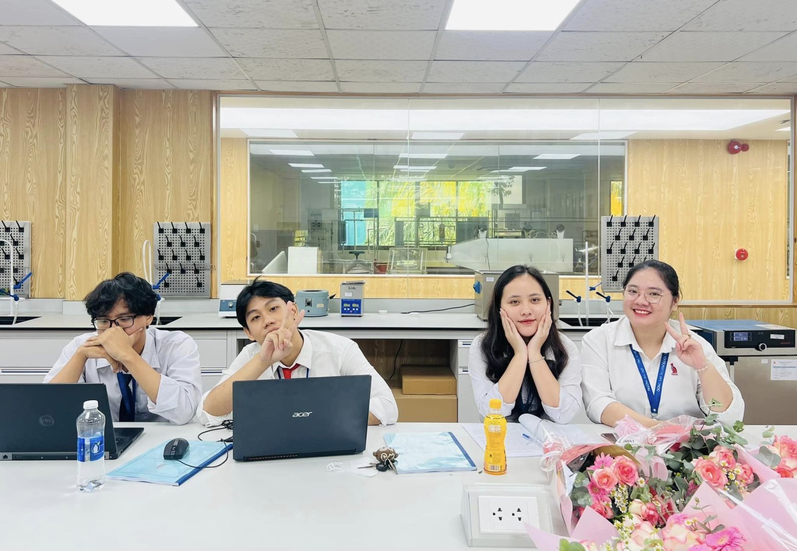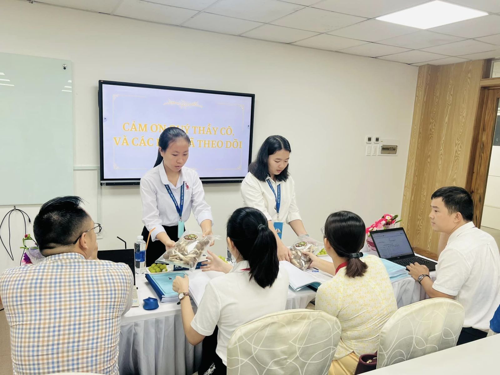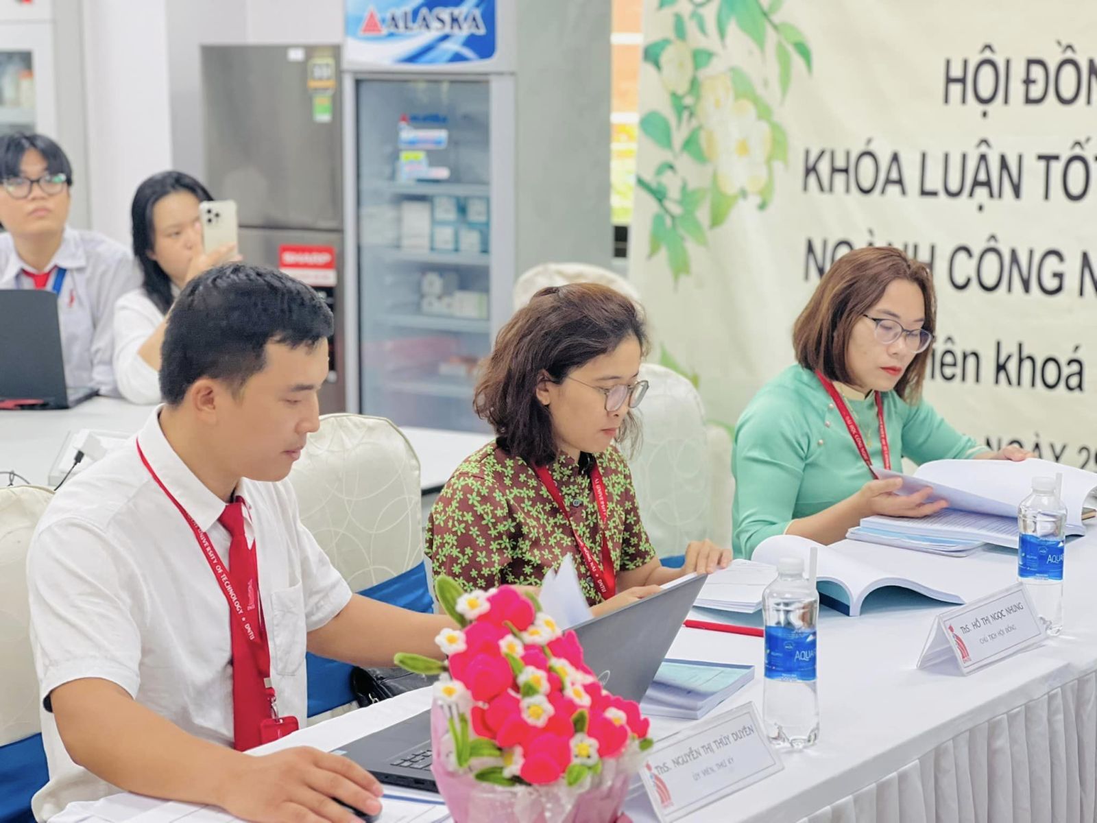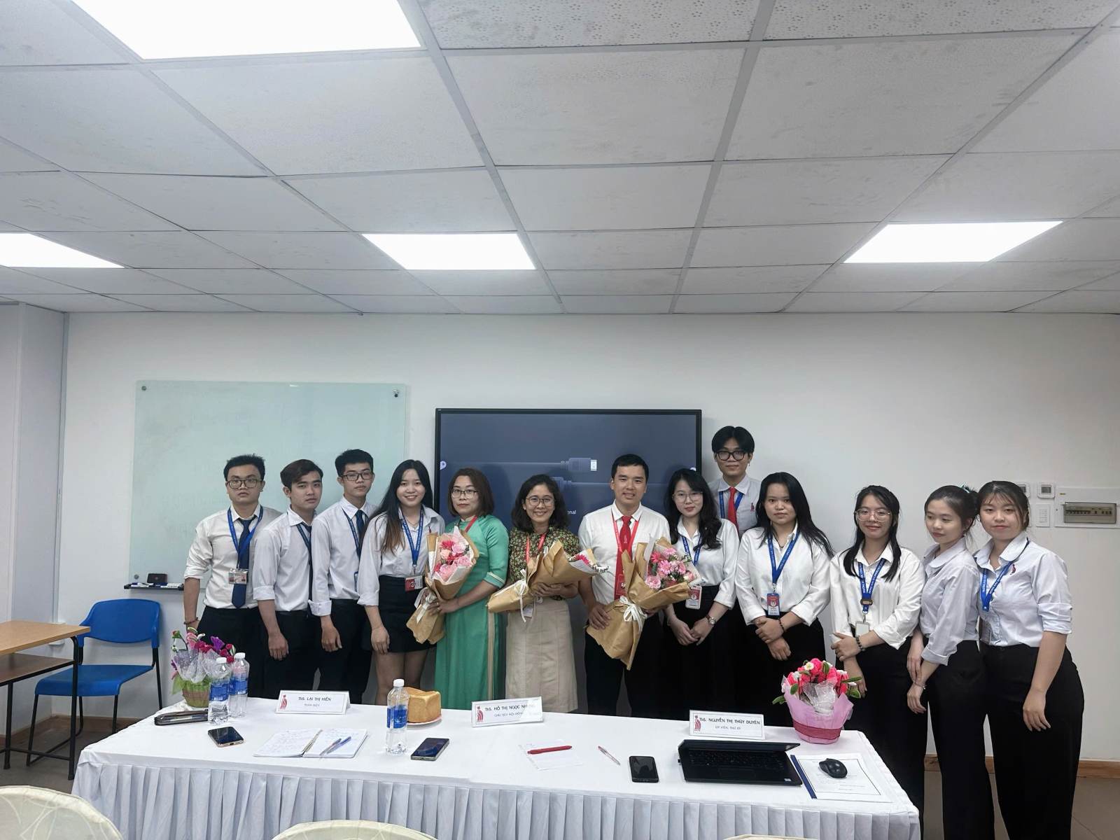 Khép lại buổi Lễ, các bạn sinh viên gửi lời tri ân và tặng những đóa hoa tươi thắm đến với thầy cô trong Hội đồng. Đồng thời, đây cũng là dịp để các bạn sinh viên bày tỏ lòng biết ơn đối với Thầy cô hướng dẫn khóa luận đã đồng hành cùng mình trong suốt quá trình học tập và nghiên cứu.