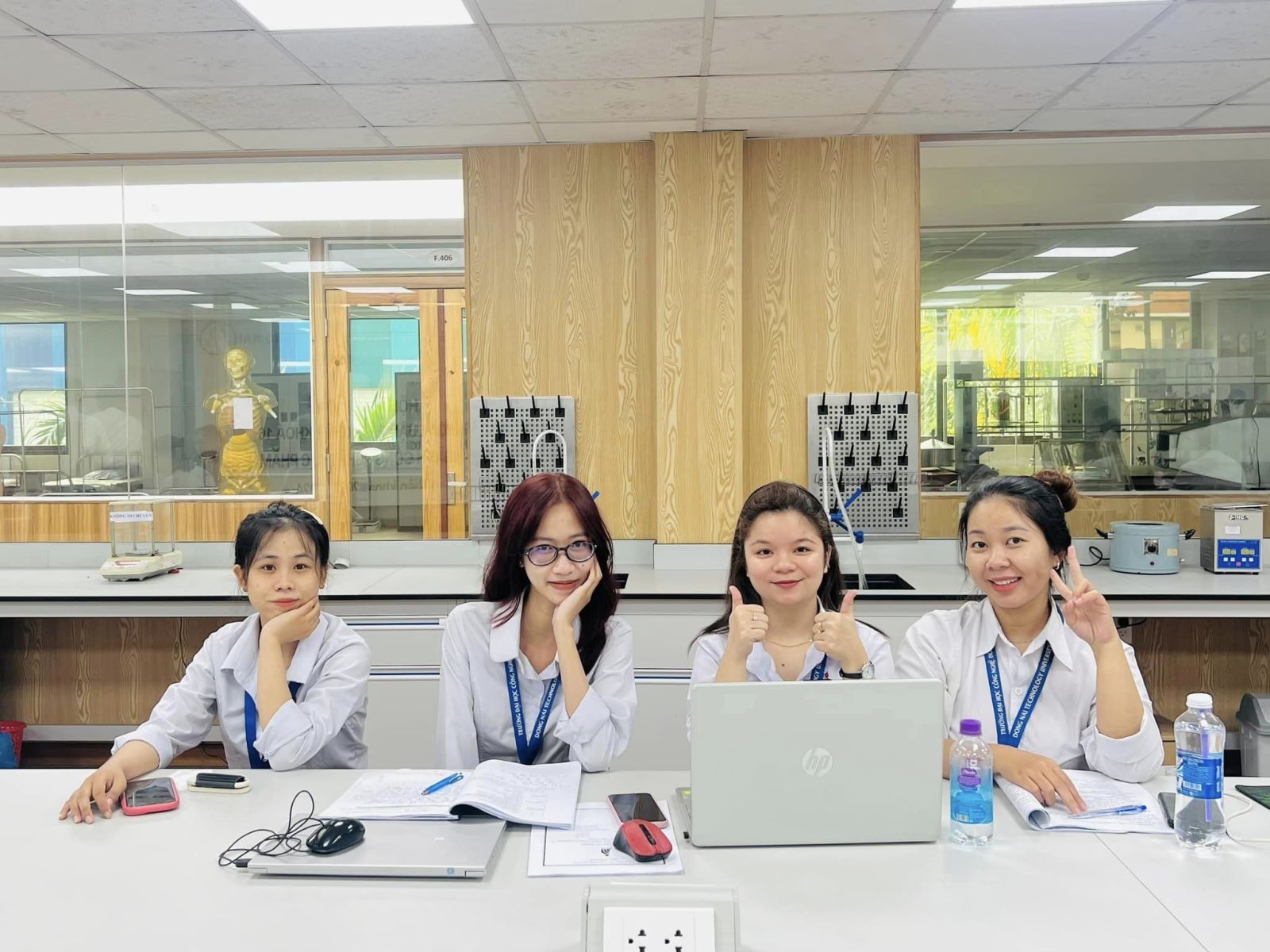 Các bạn sinh viên chụp ảnh lưu niệm với Hội đồng 2 đánh giá khóa luận.