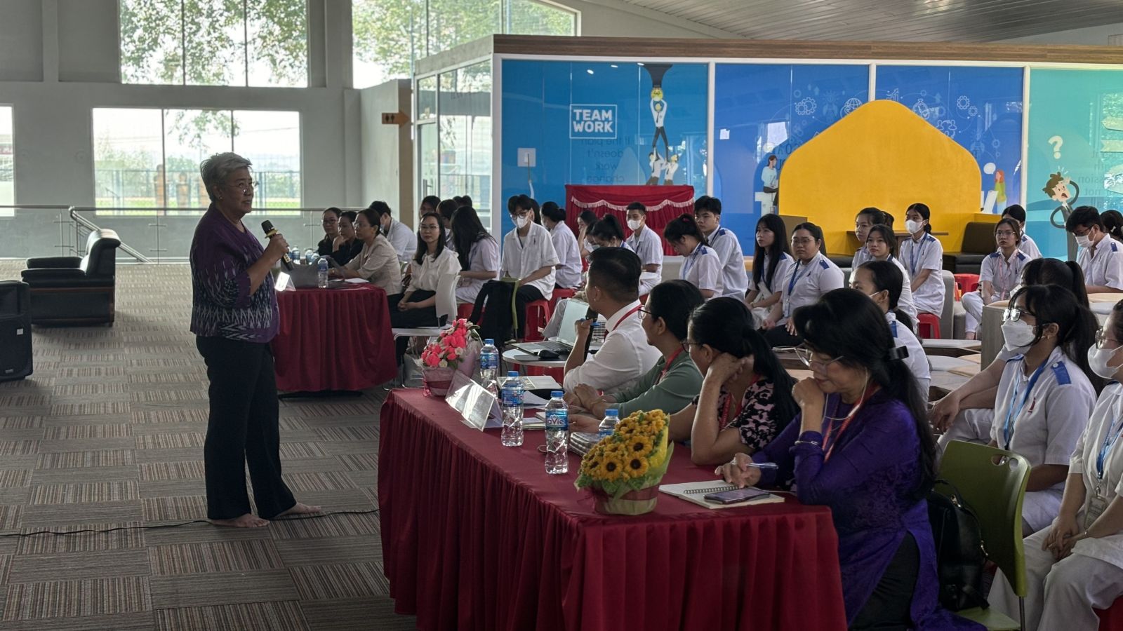 Em Vương Quốc Huy, sinh viên năm hai ngành Điều dưỡng, chia sẻ: "Buổi giảng với Tiến sĩ Panta Apiruknapanond đã mở rộng tầm nhìn của em về lĩnh vực chăm sóc sức khỏe bệnh ngoại khoa. Em học được nhiều kỹ năng mới và cảm thấy tự tin hơn trong việc thực hành chăm sóc bệnh nhân."