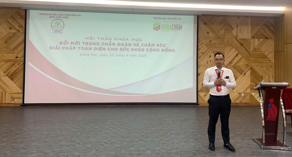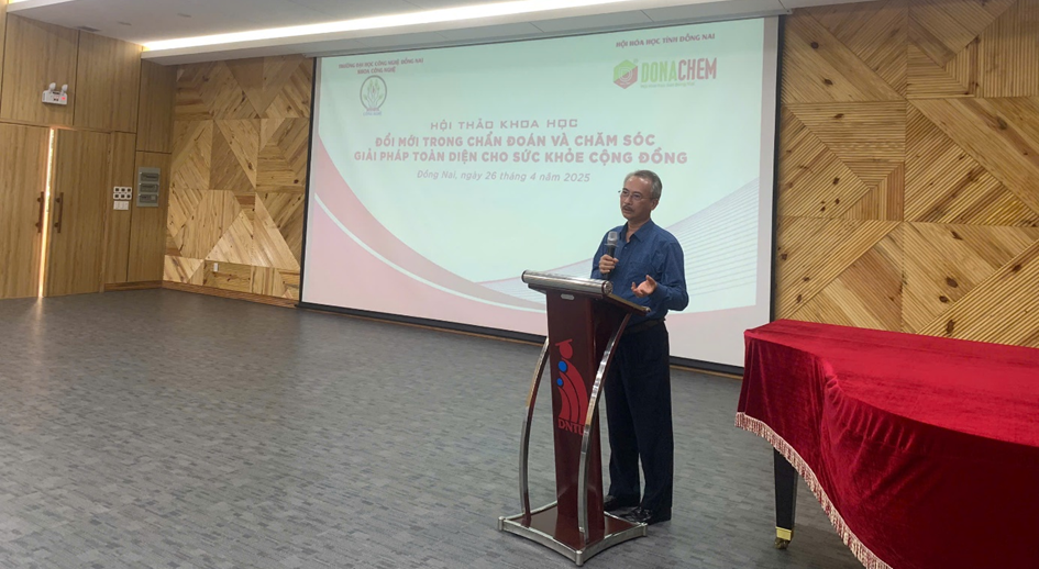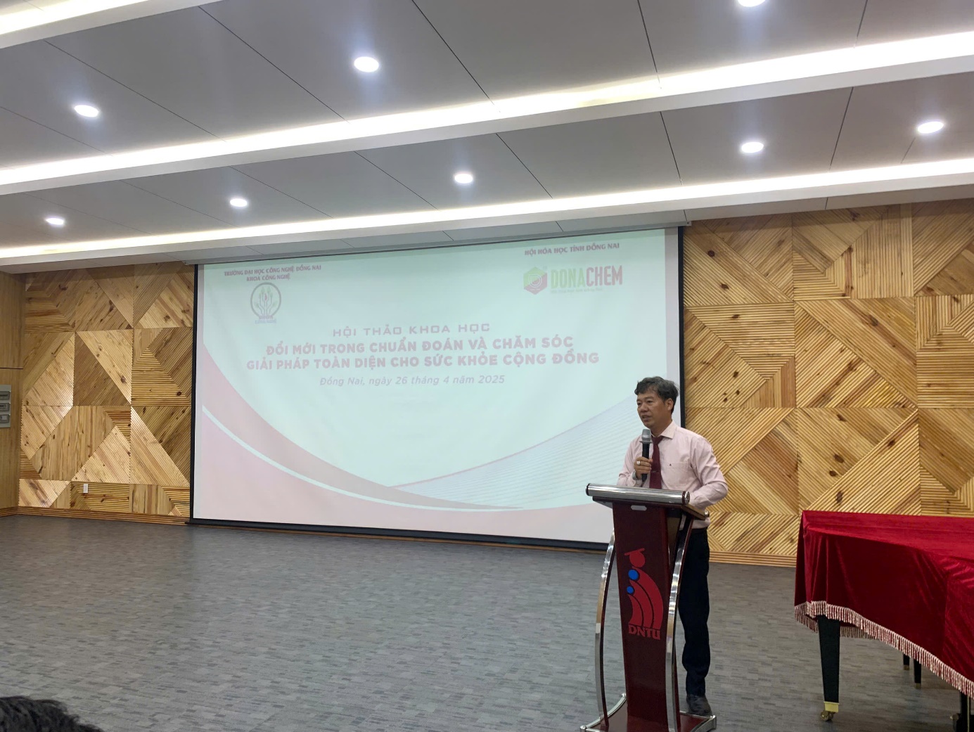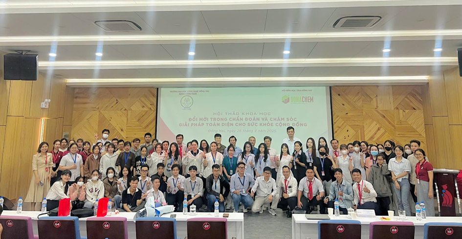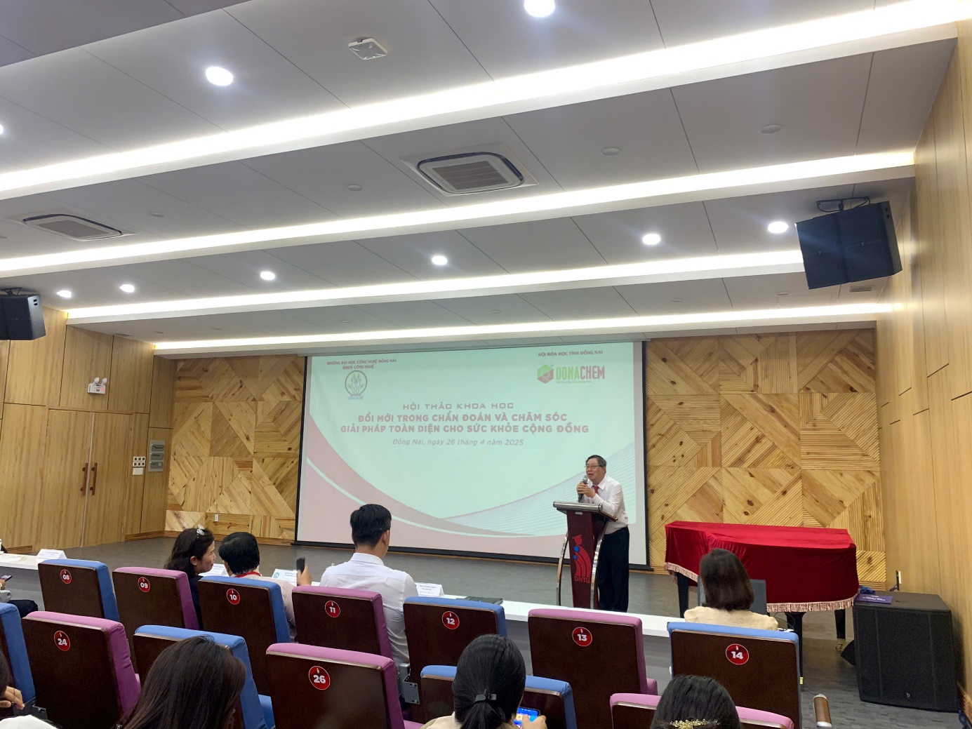Sáng ngày 26/4/2025, hội thảo khoa học được đồng tổ chức bởi Khoa Công nghệ và Hội Hóa học tỉnh Đồng Nai với chủ đề “Đổi mới trong chẩn đoán và chăm sóc – Giải pháp toàn diện cho sức khỏe cộng đồng” tại Hội trường (Nhà A - Trường Đại học Công nghệ Đồng Nai) với sự tham gia đông đảo các chuyên gia, nhà khoa học, cán bộ y tế, doanh nghiệp, giảng viên/sinh viên.
