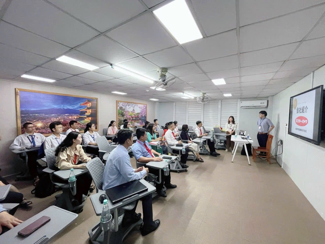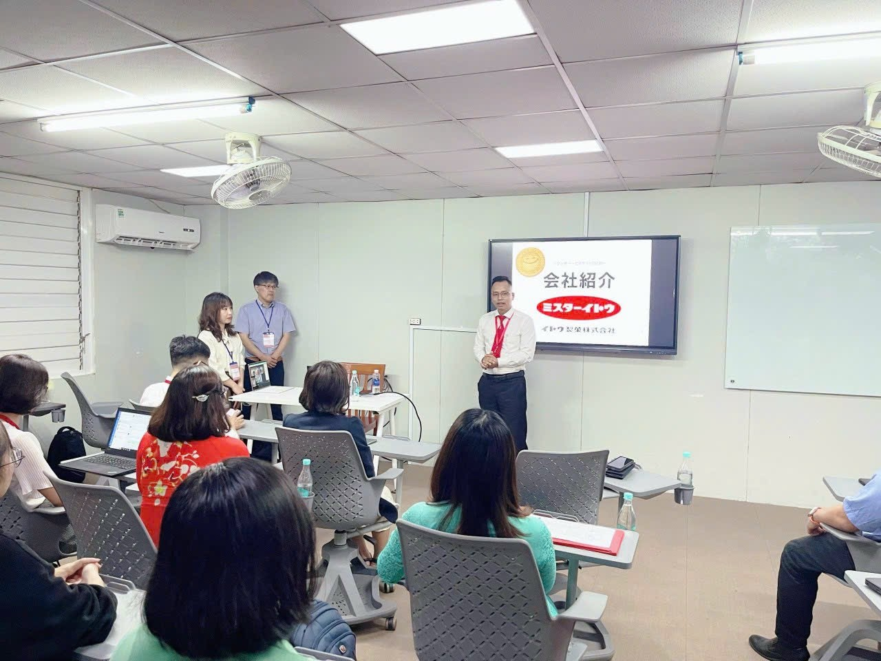 Cũng trong buổi gặp mặt, Chị Nguyễn Thị Thu Trang - Phó Giám đốc Công ty TNHH JIZAKA đã giới thiệu về chương trình thực tập có lương từ 6 tháng đến 1 năm tại Công ty bánh kẹo Ito. Đây được xem là cơ hội quý giá để sinh viên phát triển bản thân, trau dồi kinh nghiệm thực tế và mong muốn trải nghiệm văn hóa làm việc của Nhật Bản.