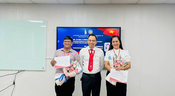 TS. Nguyễn Thành Công, Phụ trách Khoa trao chứng nhận Teaching Assistant cho TS Jo Neil T. Peria và TS. Analiza B. Tanghal.